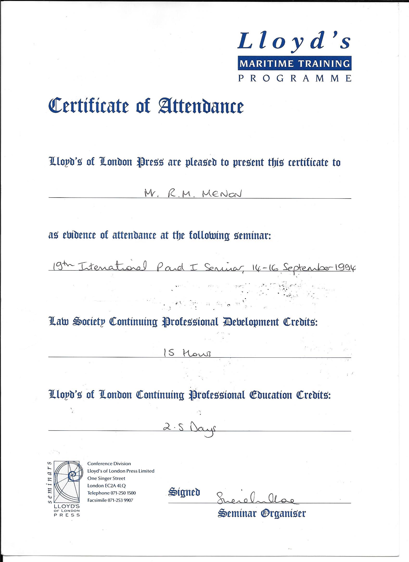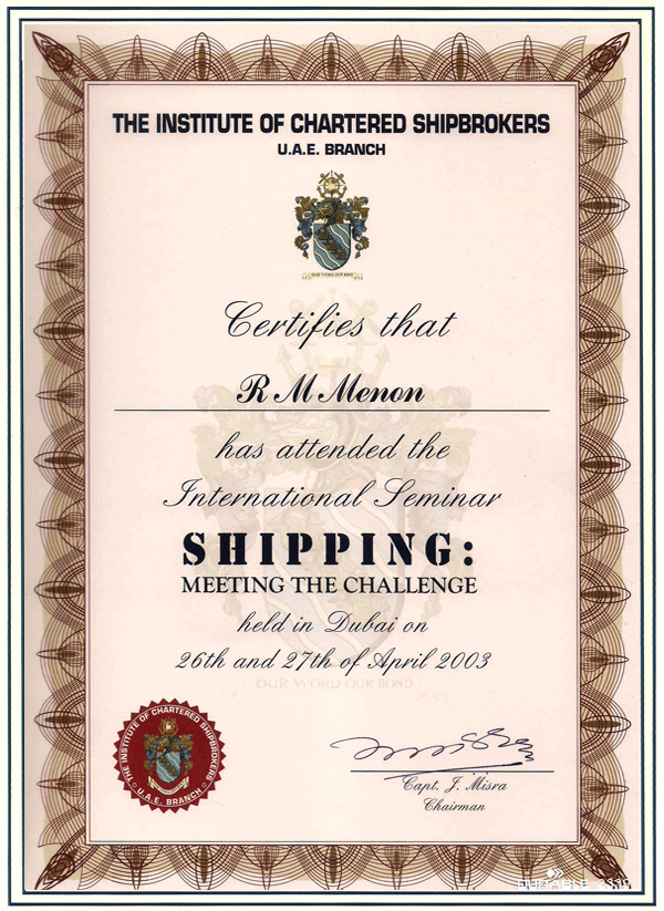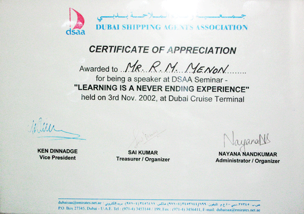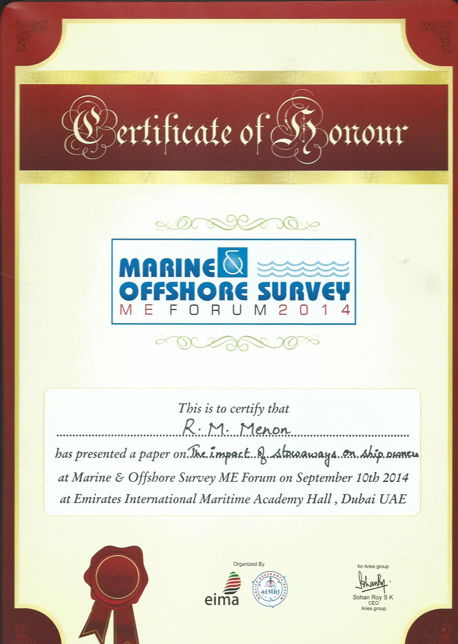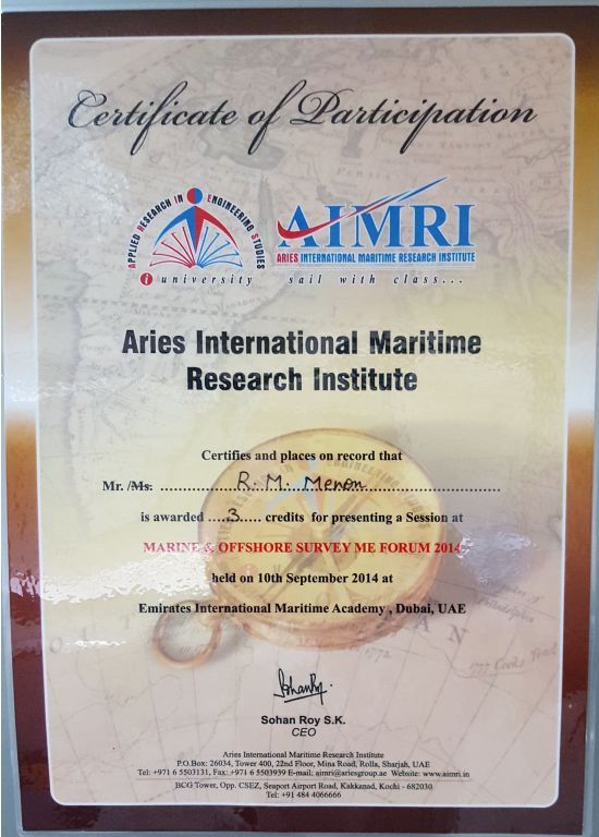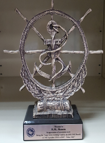 IN APPRECIATION OF PRESENTATION MADE DURING THE "CARGO SURVEY WORKSHOP" HELD BY IIMS (UAE branch) on 19th SEPT. 2016.